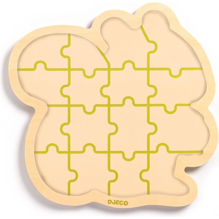 Inside the animal-shaped wooden frame, recreate the picture to discover a lovely little squirrel. The Djeco jigsaw puzzle consists of 16 bricks, in different shapes and in a good size. The Jigsaw puzzle helps to strengthen the fine motor skills and logical sense of the little ones, and it can be put together again and